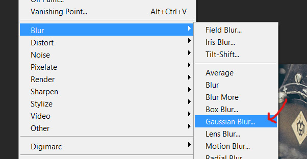 Затем в меню выберите Filters>Blur>Gaussian Blur/Фильтры>Размытие>Размытие по Гауссу.