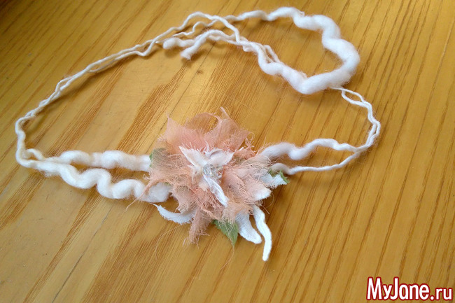 Маленький цветок закрепим на шерстяном шнурке с “непропрядами”,